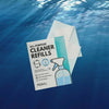 Refill sheets come in lightweight paper-based packaging β no bulky plastic bottles.